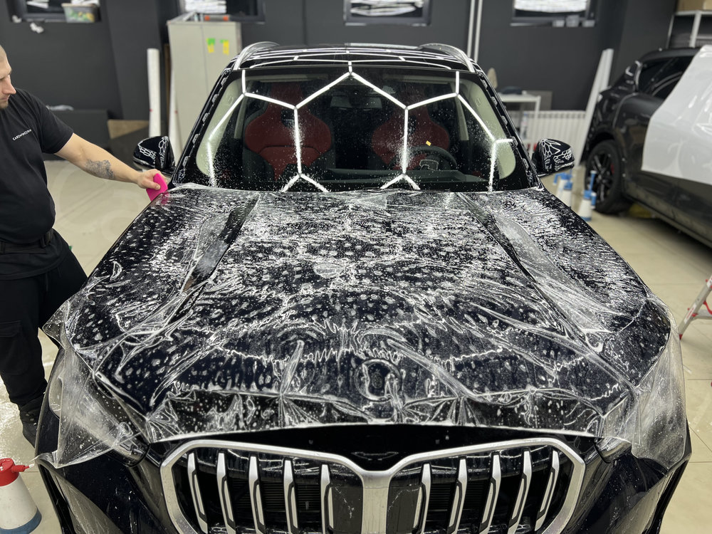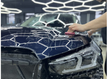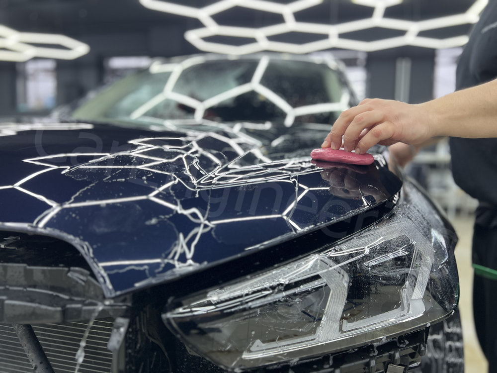 Оклеиваем защитными полиуретановыми пленками переднюю часть автомобиля.
