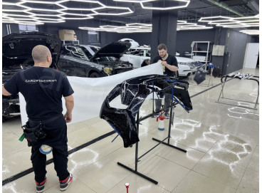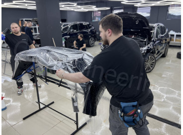 Разборка кузова. Перед оклейкой демонтируются элементы, доступ к которым невозможен при стандартной мойке. Особое внимание уделяется стыкам и местам соединения деталей — именно там накапливаются пыль и загрязнения, которые невозможно полностью удалить без разборки. Если оставить их внутри, во время оклейки они могут попасть под пленку и повлиять на внешний вид покрытия и надежность его фиксации.